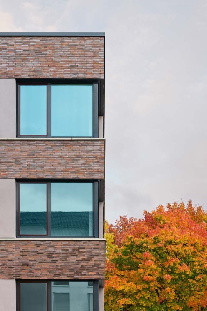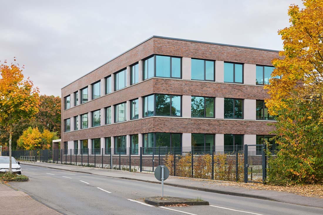 Bei der Platzierung der Baukörper wurden die Fluchten der Bestandsgebäude übernommen und der Gesamtkomplex als Campus baulich gefasst.