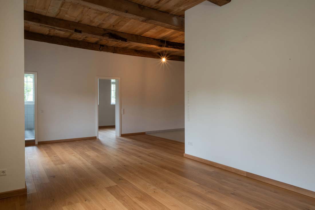 Im Torhaus wird eine Wohnung saniert und mittels anliegender Stallung ausgebaut.